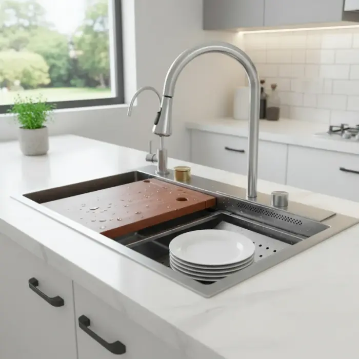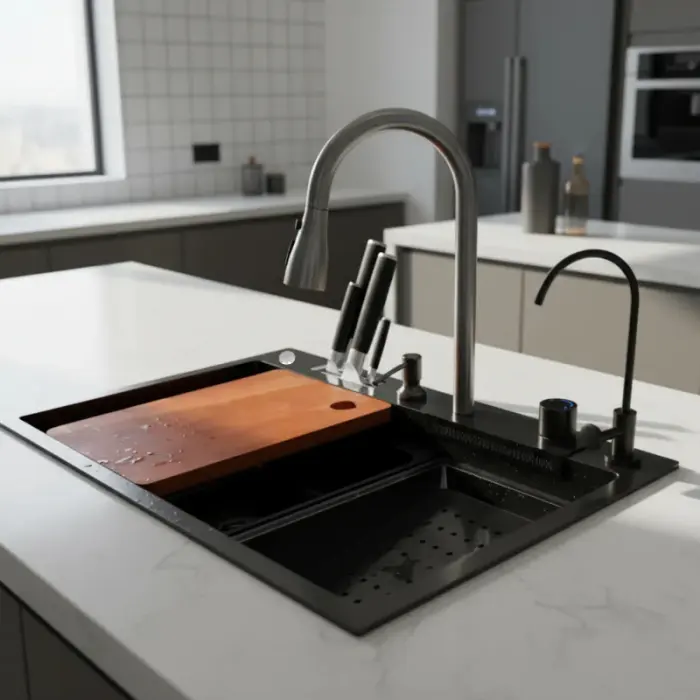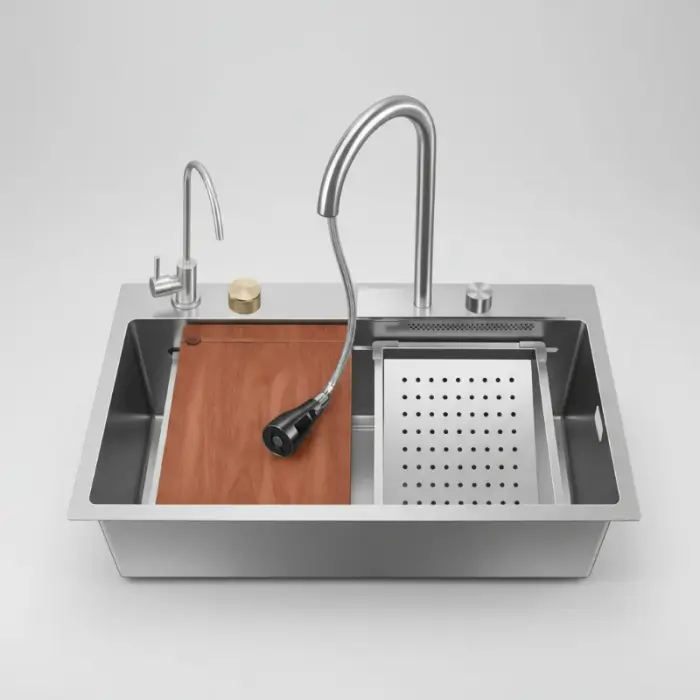 Bacha inteligenteAccesorios y conexión completaMedidas: 75 x 45 cmMaterial: Acero inoxidableColores Disponibles: Gris y Negro