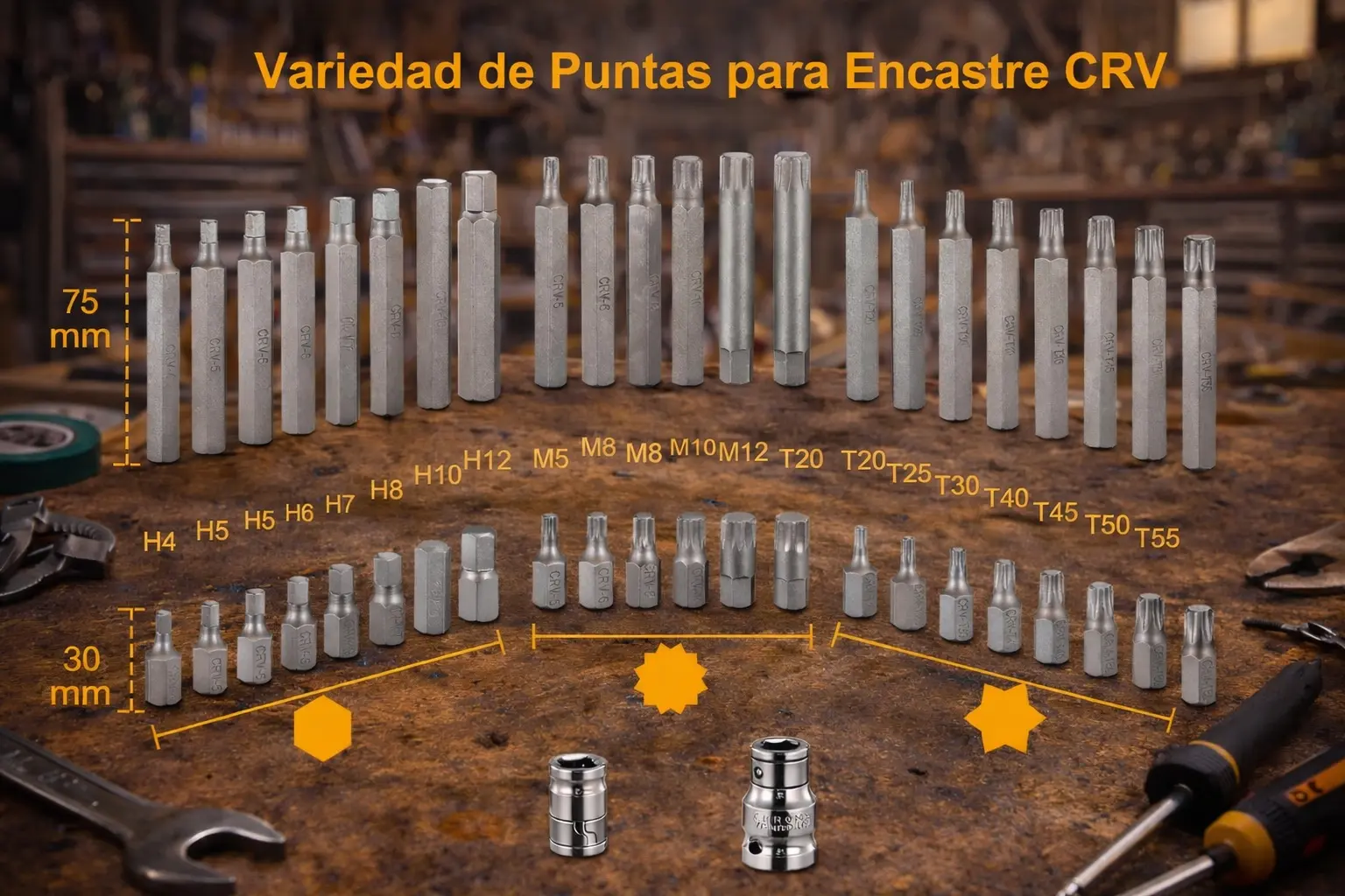 - 7 Puntas Torx (10x30mm) T20-T25-T30-T40-T45-T50-T55