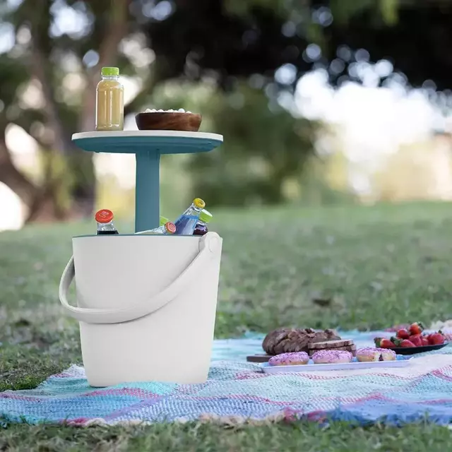 Enfriador 2 en 1 con una capacidad de 17 litros y mesa tipo bistró con un diseño único e innovador. Ideal para uso itinerante, ligero para llevar a todas partes, fácil de limpiar y mantener, ¡y excelente resistencia y protección contra los rayos UV! Una nevera portátil para que salgas a presumir durante tus horas felices, horas de ocio y entretenimiento, picnics, acampadas y cualquier otro lugar al que quieras llevarte esta hermosa pieza. Con la misma funcionalidad que la Cool Bar, también puede convertirse en una mesa pequeña donde colocar los aperitivos y mantener a los bebés refrigerados hasta 12 horas. Además, presenta un precioso color azul océano por fuera y blanco por dentro.